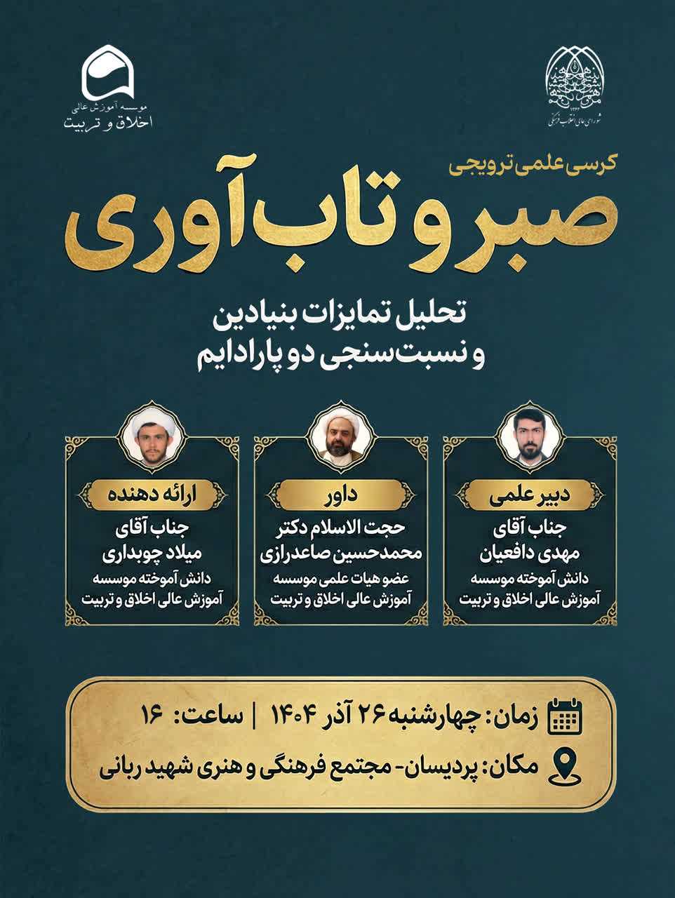 کرسی علمی ترویجی با موضوع: تحلیل تمایزات بنیادین و نسبت سنجی دو پارادایم
