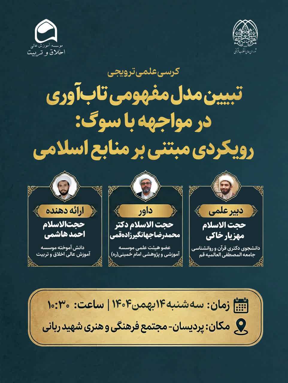 کرسی علمی ترویجی با موضوع: تبیین مدل مفهومی تاب آوری در مواجهه با سوگ رویکردی مبتنی بر منابع اسلامی